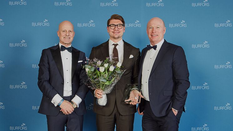 Mäklaren med årets högsta kundnöjdhet: Henrik Björnbäck. Här med Mats Ljung, ägare (t.v.) och Sven-Erik Kristensen (t.h).