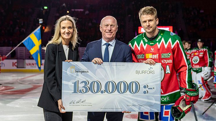 Under Frölunda HC:s hockeymatch den 2 mars bjöd Scandinavium på jublande ovationer när Bjurfors överlämnade en check på 130 000 kronor till Insamlingsstiftelsen för Drottning Silvias barnsjukhus.